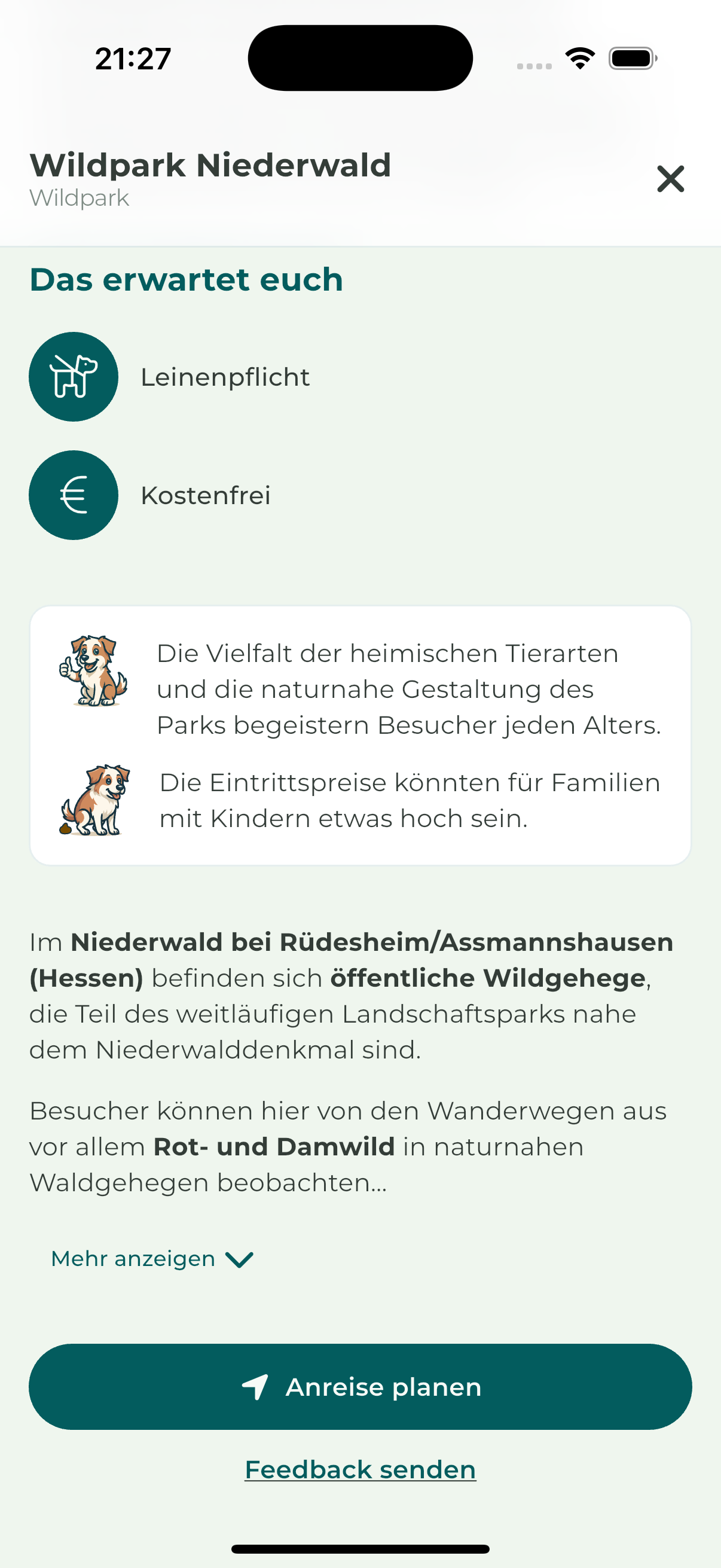 - Ausflugsziele (Cafes/Restaurants, Parks etc.)