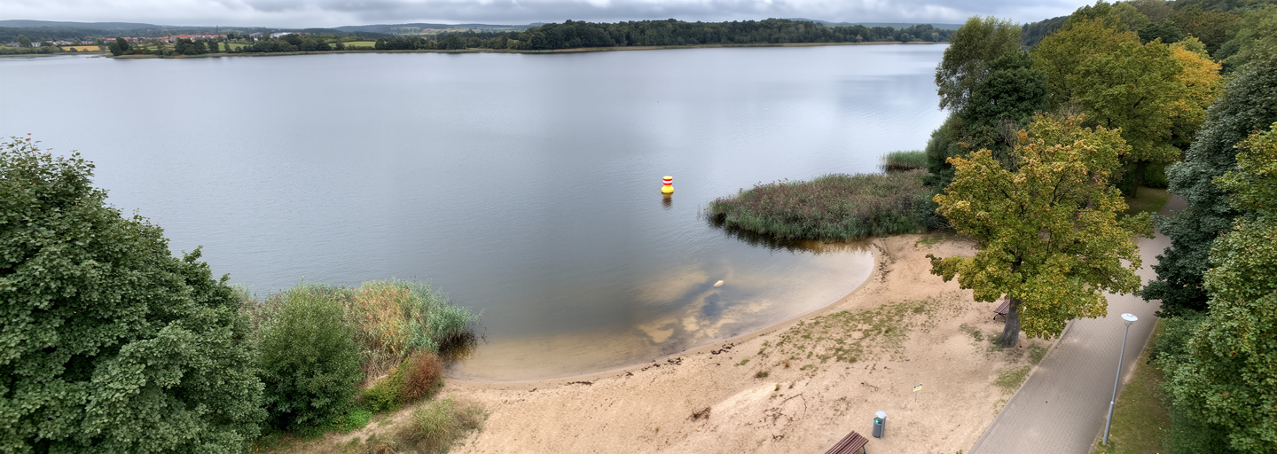 Viele kleinere Seen wie der Pehlitzsee, der Parsteiner See (am Nordufer) oder der Wollitzsee bieten ruhige Uferabschnitte – perfekt für eine Pfotenabkühlung im Sommer oder eine Pause mit Ausblick.