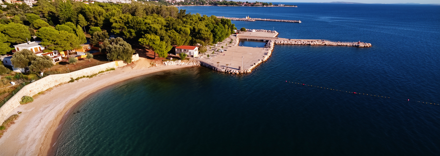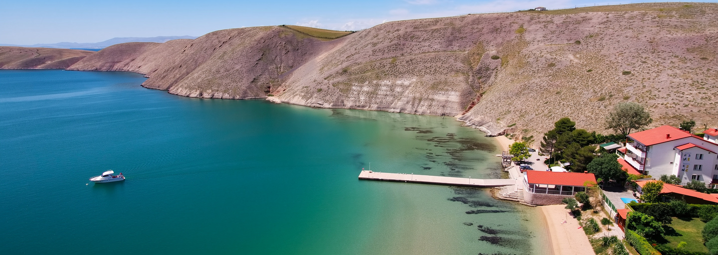 Am Ende des Hafens gibt es einen Strandabschnitt, an dem Hunde erlaubt sind. Ein praktischer Ort zum Baden auf der "Mondinsel" Pag.