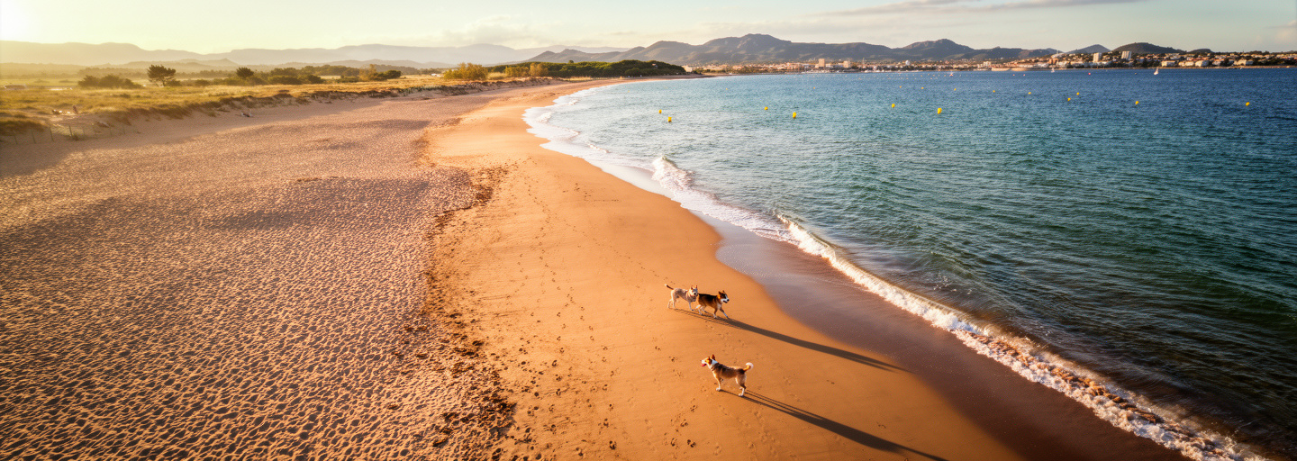 Dieser Strand an der Costa Brava ist einer der ersten offiziellen Hundestrände Spaniens und ein echtes Symbol für Freiheit. Auf einem kilometerlangen, breiten Streifen aus feinem Sand könnt ihr hier gemeinsam die Wellen jagen und endlose Spaziergänge unternehmen. Der Strand ist Teil eines Naturparks und strahlt eine wilde, unberührte Atmosphäre aus. Ein Muss für alle, die Platz und Natur lieben.